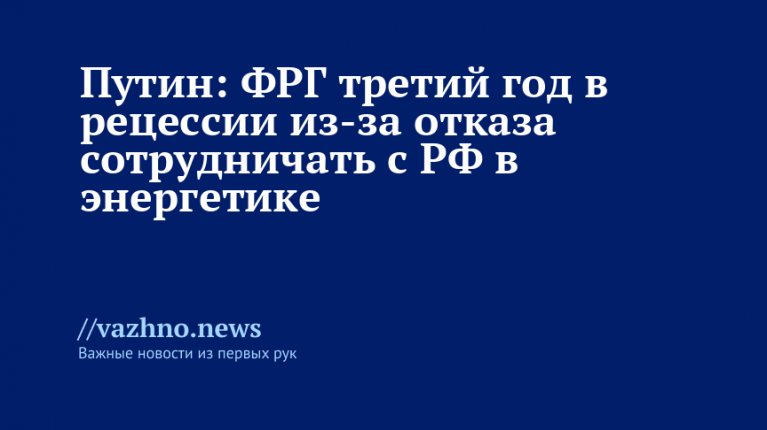Путин: ФРГ третий год в рецессии из-за отказа сотрудничать с РФ в энергетике