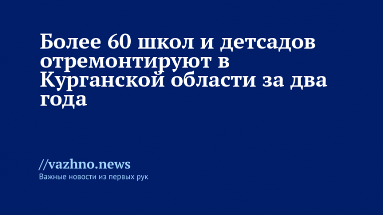 В Курганской области в течение двух лет планируют отремонтировать 62 школы и детских сада. Об этом губернатор Вадим Шумков сообщил в своем Telegram-канале.