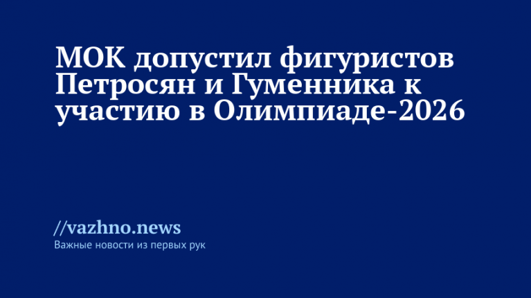 Международный олимпийский комитет (МОК) допустил российских фигуристов Аделию Петросян и Петра Гуменника к участию в Олимпиаде-2026 в нейтральном статусе. Об этом 27 ноября сообщили в пресс-службе комитета на сайте.