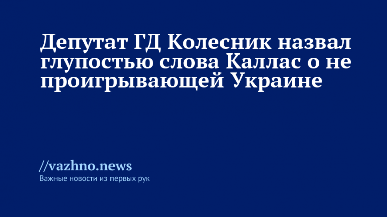 Слова главы дипломатии Евросоюза (ЕС) Каи Каллас о том, что Украина не проигрывает на фронте, являются глупостью. Об этом член комитета Госдумы по обороне Андрей Колесник заявил в четверг, 27 ноября.