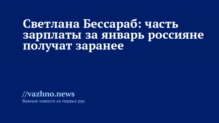 Светлана Бессараб: часть зарплаты за январь россияне получат заранее