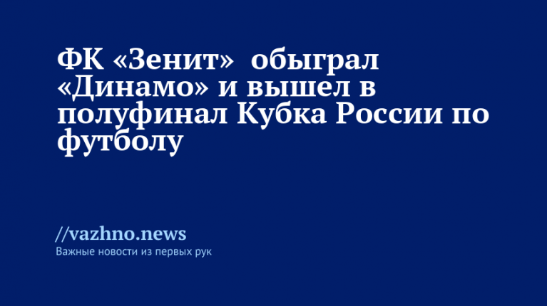 ФК «Зенит» обыграл «Динамо» и вышел в полуфинал Кубка России по футболу