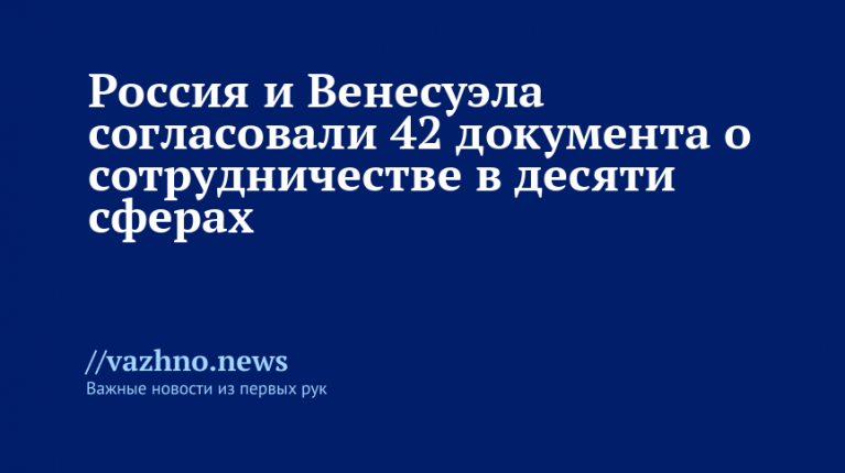 Россия и Венесуэла согласовали 42 документа о сотрудничестве в десяти сферах