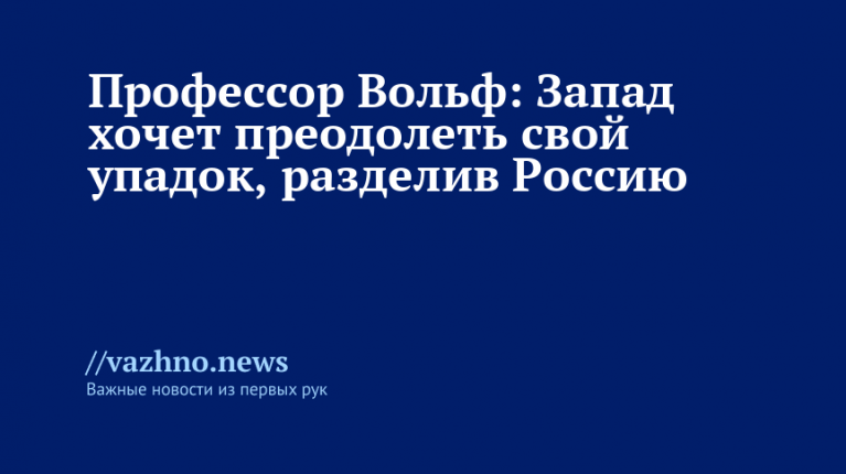 Государства коллективного Запада стремятся предотвратить свой упадок и разделить Россию на ряд небольших стран, чтобы воспользоваться ее ресурсами. Такое мнение 28 ноября выразил профессор Массачусетского университета Ричард Вольф в эфире You Tube-канала Dialogue Works.