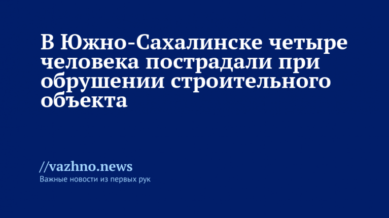 В Южно-Сахалинске произошло частичное обрушение строящегося объекта, пострадали четыре человека. Соответствующую информацию 28 ноября опубликовали на официальном сайте МЧС России по Сахалинской области.«По предварительной информации, при заливке бетоном произошло обрушение части двухэтажного строящегося здания», — говорится в заявлении ведомства.Уточняется, что в результате инцидента пострадали четыре человека, по предварительным, трое находятся под завалами. На месте происшествия продолжаю работу 16 человек и пять единиц специальной техники, в том числе кинологический расчет. В августе при обрушении на строящемся объекте в Магасе, Республика Ингушетия, пострадали трое рабочих, одного из них госпитализировали. Уточнялось, что причиной случившегося могло стать разрушение опалубки, произошедшее из-за чрезмерной нагрузки при заливке бетонной смеси.Все важные новости — в канале «Известия» в мессенджере МАХ