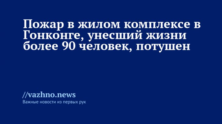 Пожар в жилом комплексе в Гонконге, который унес жизни свыше 90 человек, полностью потушен. Об этом 28 ноября сообщило Центральное телевидение Китая (CCTV).