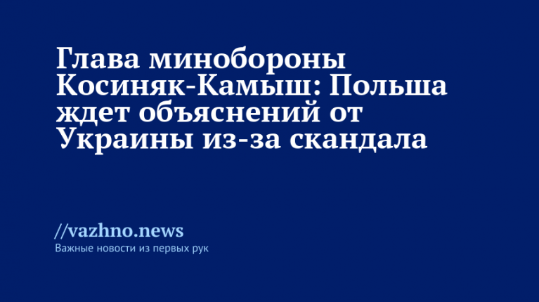 Глава минобороны Косиняк-Камыш: Польша ждет объяснений от Украины из-за скандала