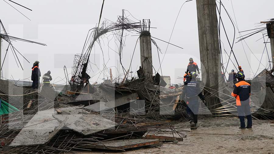 Опубликованы кадры последствий обрушения строящегося здания в Южно-Сахалинске