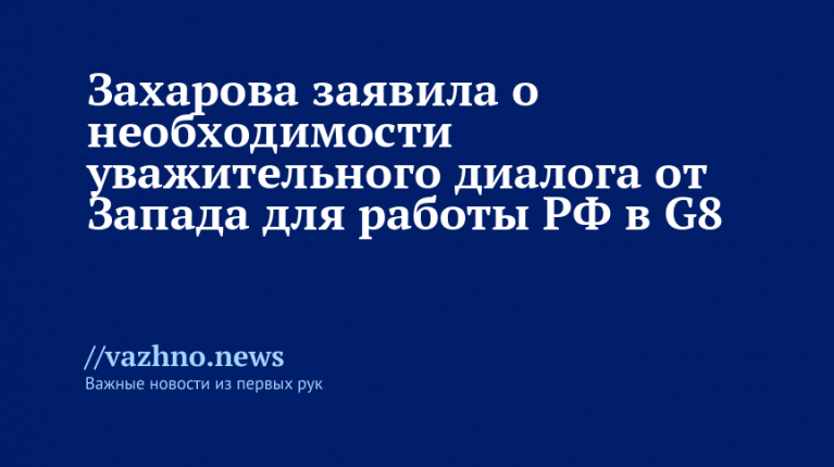 Захарова заявила о необходимости уважительного диалога от Запада для работы РФ в G8