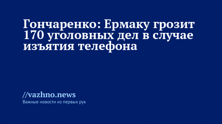 Глава офиса президента Украины Андрей Ермак может столкнуться с 170 новыми уголовными делами, если следствие получит доступ к его телефону. Об этом 28 ноября сообщил депутат Верховной Рады Алексей Гончаренко (внесен в РФ в перечень террористов и экстремистов) в своем Telegram-канале.«Самое интересное сейчас, будут ли забирать у Ермака телефон. Потому что неизвестно, что за материал на него по делу Миндича. Но телефон Ермака — это потенциально еще 170 новых уголовных дел , все адвокаты страны не помогут», — написал Гончаренко.Он отметил, что каждое сообщение, отправленное Ермаком, может стать основанием для отдельного уголовного дела. Депутат также предположил, что Ермака могут преследовать за превышение полномочий, злоупотребление властью, незаконные указания подчиненным и политические репрессии против оппонентов. НАБУ 10 ноября выявило схему отмывания денег в энергетическом секторе государства, с помощью которой прошло около $100 млн. В ходе дела о коррупции в энергетической сфере обвинения предъявили семи лицам, в том числе бизнесмену Тимуру Миндичу (его называют руководителем преступной схемы).Экс-премьер Украины Николай Азаров, в свою очередь, сообщил, что коррупционные схемы на территории государства возглавлялись лично украинским президентом Владимиром Зеленским и Ермаком.В этот же день депутат Верховной рады Ярослав Железняк сообщил, что сотрудники антикоррупционных ведомств провели обыск у Ермака в рамках уголовного дела о коррупции бизнесмена Миндича. Позднее НАБУ и Ермак подтвердили данную информацию.Все важные новости — в канале «Известия» в мессенджере МАХ