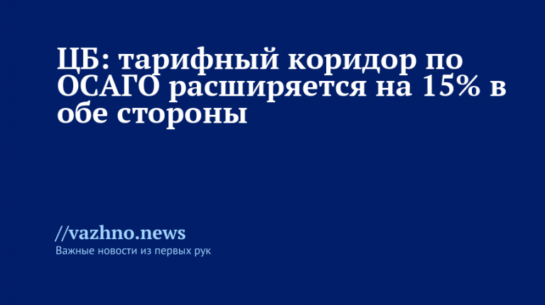 ЦБ: тарифный коридор по ОСАГО расширяется на 15% в обе стороны