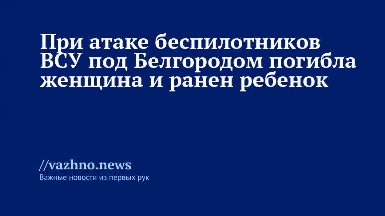 В результате атаки беспилотных летательных аппаратов (БПЛА) Вооруженных сил Украины (ВСУ) на Белгородскую область погибла женщина, также пострадал ребенок. Об этом 28 ноября сообщил губернатор Вячеслав Гладков.