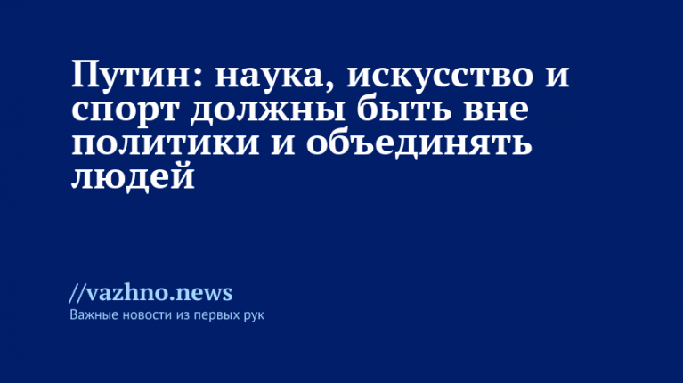 Путин: наука, искусство и спорт должны быть вне политики и объединять людей