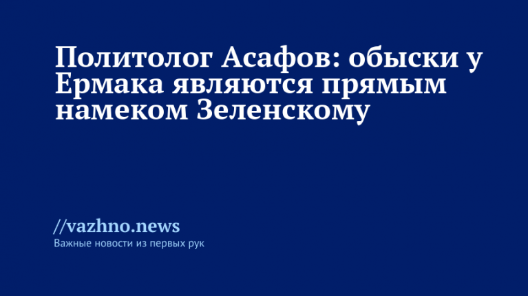 В беседе с Lenta.Ru в пятницу, 28 ноября, политолог выразил мнение, что обыски у Андрея Ермака были проведены, в частности, для того, чтобы подтолкнуть Зеленского к подписанию мирного соглашения. Он напомнил, что Специализированная антикоррупционная прокуратура (САП) и Национальное антикоррупционное бюро Украины (НАБУ) контролируются не офисом президента, а внешними структурами и потому могут стать прочной основой для дальнейших обвинений.
