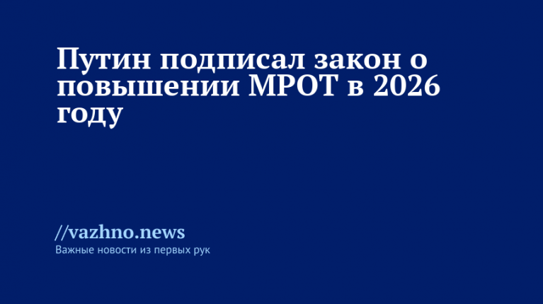 Президент России Владимир Путин подписал закон об установлении минимального размера оплаты труда (МРОТ) с 2026 в размере в размере 27 093 рублей. Соответствующий документ опубликовали 28 ноября на официальном интернет-портале правовой информации.