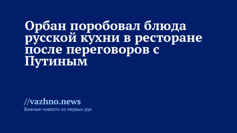 После переговоров с президентом РФ Владимиром Путиным премьер-министр Венгрии Виктор Орбан поужинал блюдами русской кухни в ресторане «Живаго» напротив Кремля. Об этом 28 ноября сообщили «Известиям» в пресс-службе заведения.