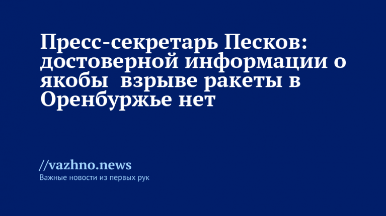 «Я не видел таких сообщений», — сказал Песков журналистам на просьбу прокомментировать сообщения о том, что на территории военной базы в Оренбургской области якобы взорвалась баллистическая ракета.