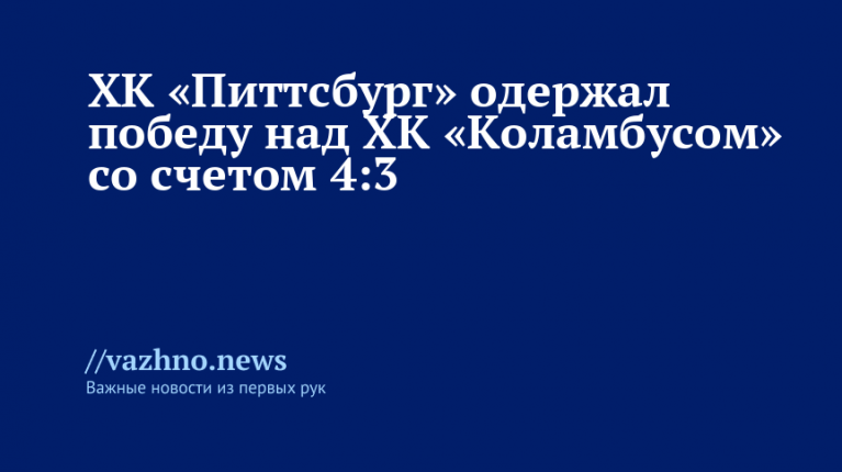 Хоккейный клуб (ХК) «Питтсбург Пингвинз» одержал победу над ХК «Коламбусом». Игра завершилась 29 ноября со счетом 4:3.