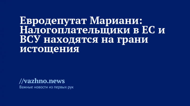 Депутат Европарламента от французской правой партии «Национальное объединение» Тьерри Мариани 29 ноября заявил, что Вооруженные силы Украины (ВСУ) и европейские налогоплательщики находятся на грани истощения, а Еврокомиссия отказывается смотреть правде в глаза.
