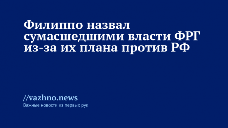 По мнению политика, целью властей ФРГ является «великая перезагрузка» с помощью конфликта. Филиппо также отметил, что люди во всем мире должны «изгнать эти безумные правительства».