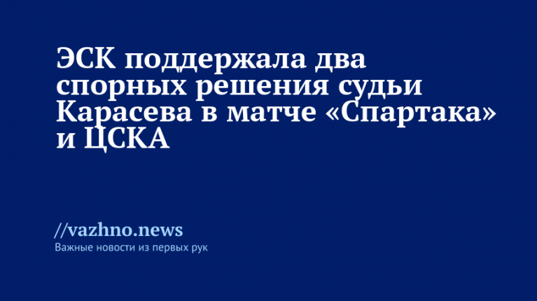 Экспертно-судейская комиссия (ЭСК) при Российском футбольном союзе (РФС) посчитала, что арбитр Сергей Карасев верно засчитал гол футбольного клуба (ФК) «Спартак» в ворота ФК ЦСКА в матче 16-го тура Российской премьер-лиги (РПЛ). Об этом 29 ноября сообщили на сайте РФС.