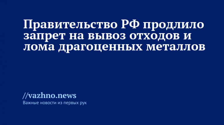 «В России продлен временный запрет на вывоз отходов и лома драгоценных металлов. Согласно подписанному постановлению, ограничение будет действовать еще шесть месяцев — с 1 декабря 2025 года до 31 мая 2026 года», — говорится на сайте правительства.