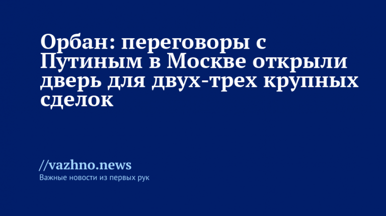 Премьер-министр Венгрии Виктор Орбан 29 ноября заявил, что после прошедшей накануне встречи с президентом России Владимиром Путиным в Кремле открывается возможность для заключения двух-трех крупных сделок.
