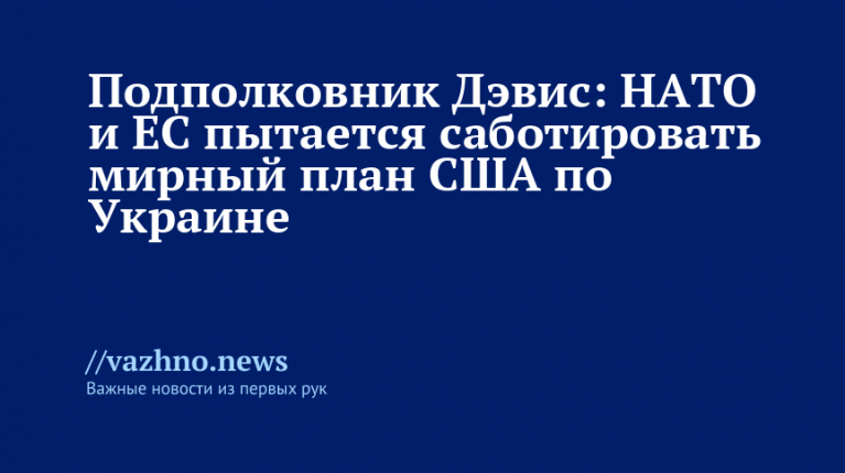 Генеральный секретарь НАТО Марк Рютте и председатель Еврокомиссии Урсула фон дер Ляйен своей позицией по Украине препятствуют усилиям американского президента Дональда Трампа по мирному урегулированию украинского кризиса. Об этом 29 ноября сообщил подполковник армии США в отставке Дэниел Дэвис.