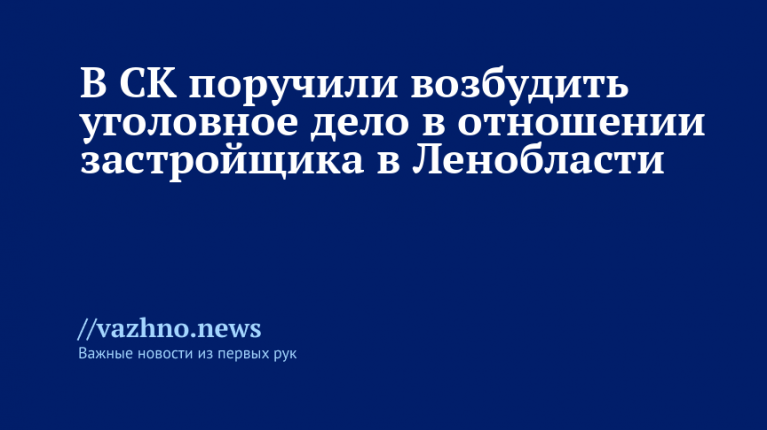 Председатель Следственного комитета (СК) России Александр Бастрыкин поручил возбудить уголовное дело в отношении одного из крупных российских застройщиков А101 в связи с нарушением прав дольщиков в городе Всеволожске Ленинградской области. Об этом 29 ноября сообщили в Информационном центре СК РФ.