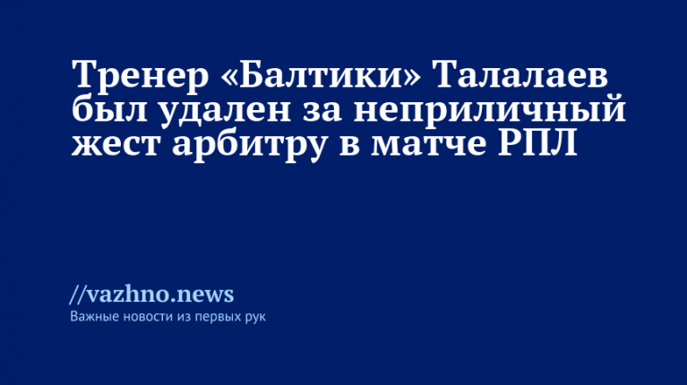 Тренер футбольного клуба «Балтика» Андрей Талалаев был удален за неприличный жест арбитру в матче Российской премьер-лиги (РПЛ) против «Спартака». Об этом стало известно 29 ноября.