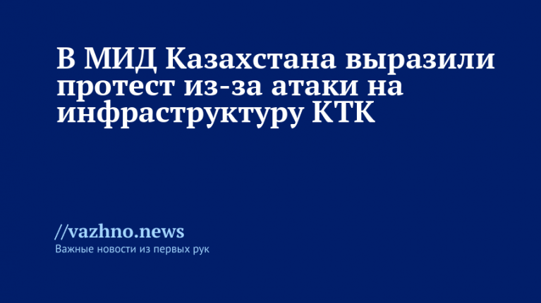 Казахстан выражает протест в связи с атакой на инфраструктуру Каспийского трубопроводного консорциума (КТК). Об этом 30 ноября сообщается на сайте министерства иностранных дел (МИД) страны.