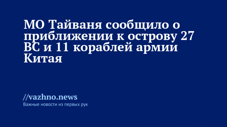 Министерство обороны (МО) Тайваня сообщило о приближении к острову 27 воздушных судов (ВС) и 11 кораблей Народно-освободительная армия Китая (НОАК). Об этом 30 ноября сообщило ведомство в соцсети X.