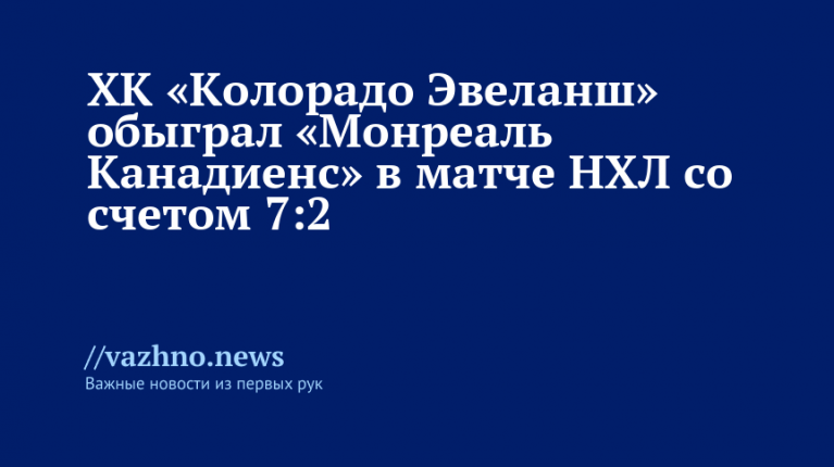 Хоккейный клуб (ХК) «Колорадо Эвеланш» одержал победу над ХК «Монреаль Канадиенс» в домашнем матче регулярного чемпионата Национальной хоккейной лиги (НХЛ). Встреча завершилась 30 ноября со счетом 7:2.