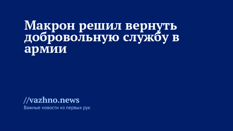 Президент Франции объявил о возвращении добровольной службы в армии, стартующей уже следующим летом. В первый год планируется принять от 2 до 3 тыс. человек, а впоследствии набирать по 50 тыс. добровольцев ежегодно. Служба будет длиться десять месяцев, а зарплата составит «до нескольких сотен евро». До этого начальник Генштаб вооруженных сил Франции заявил, что военные должны быть «готовы к столкновению с Россией через три-четыре года». Подробности — в материале «Известий».