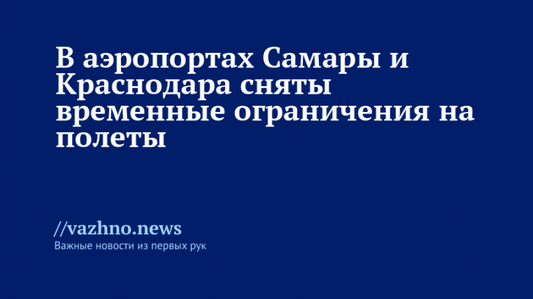 «Аэропорт Самара (Курумоч). Сняты ограничения на прием и выпуск воздушных судов. Аэропорт Краснодар (Пашковский) сняты ограничения», — говорится в публикации.