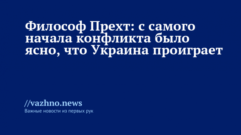 «Одно было ясно с самого начала: Украина не может выиграть этот конфликт. Это было понятно и в то время, когда в наших ведущих СМИ единодушно, почти как кредо, царило мнение, что Украина должна победить», — сказал Прехт в интервью телевизионной станции ServusTV On, трансляция которого опубликована на YouTube-канале.