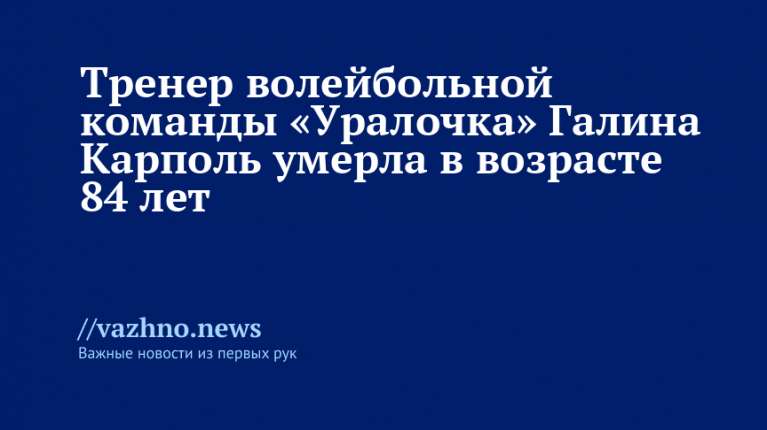 «Всероссийская федерация волейбола с глубоким прискорбием сообщает об уходе из жизни Галины Михайловны Карполь», — указано в Telegram-канале.