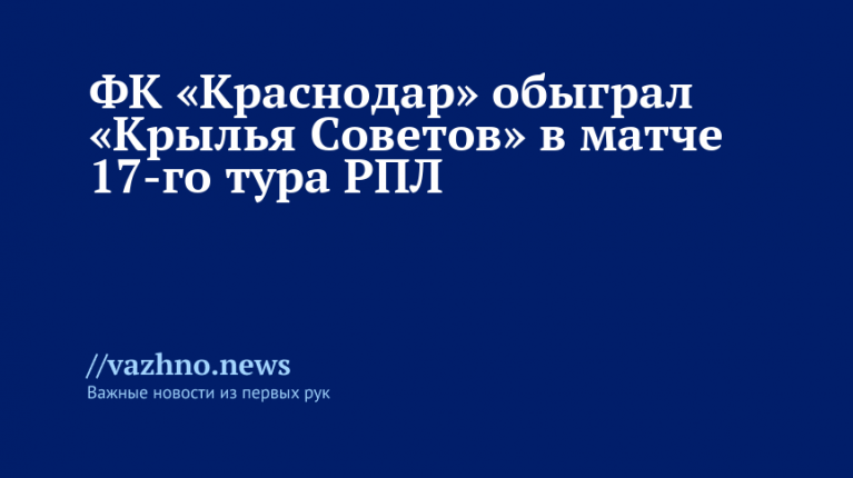 Футбольный клуб (ФК) «Краснодар» обыграл «Крылья Советов» в матче 17-го тура МИР Российская премьер-лига (РПЛ). Встреча состоялась 30 ноября в Краснодаре на стадионе «Ozon Арена» и завершилась со счетом 5:0.
