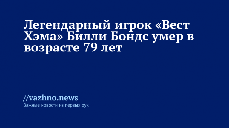 Бывший игрок и тренер футбольного клуба (ФК) «Вест Хэм Юнайтед» Билли Бондс скончался на 80-м году жизни. Об этом 30 ноября сообщили на сайте клуба.