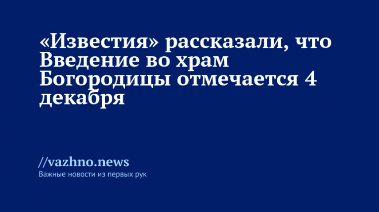 «Известия» рассказали, что Введение во храм Богородицы отмечается 4 декабря
