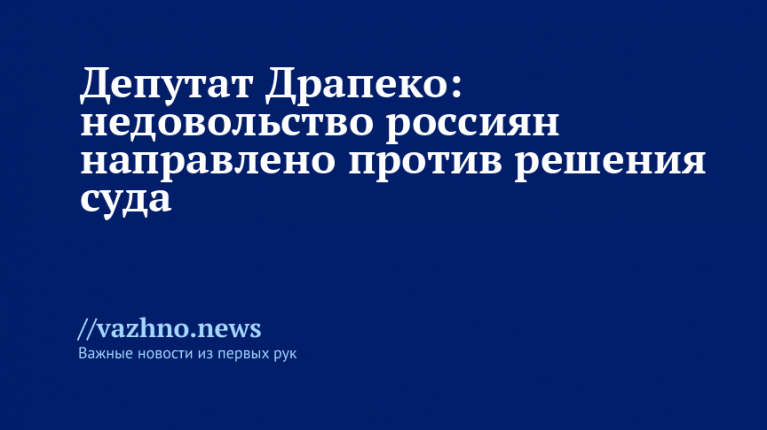 Депутат Драпеко: недовольство россиян направлено против решения суда