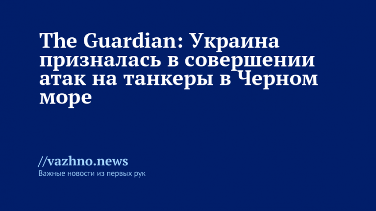 Украина признала свое участие в атаках на танкеры в акватории Черного моря. Об этом 29 ноября узнала газета The Guardian.«Украинские морские беспилотники нанесли удар по танкерам в Черном море, сообщил в субботу официальный представитель», — говорится в публикации.Источник рассказал, что в результате прямого попадания суда оказались выведены из строя из-за критических повреждений. Официальный представитель МИД РФ Мария Захарова 30 ноября заявила, что терактами в Черном море Киев пытается сорвать мирные переговоры. Она добавила, что Киеву важно отвлечь внимание от коррупционного скандала на Украине с помощью подобных действий.В МИД РФ призвали осудить совершенные в Черном море теракты и оценить деструктивные действия киевского режима.