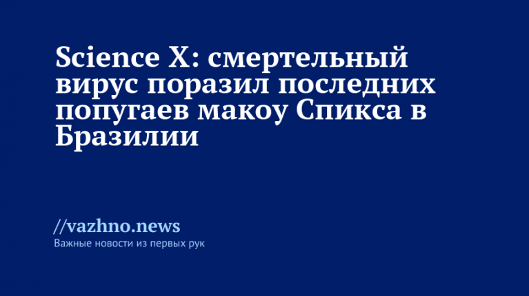 Последние дикие особи редкого синего ара, известного как макоу Спикса, были поражены, вероятно, неизлечимым смертельным вирусом. Этот вирус является серьезным ударом по программе по возвращению вида в полузасушливую естественную среду на северо-востоке Бразилии, спустя 25 лет после признания их вымершими в дикой природе. Об этом 27 ноября сообщил журнал Science X.