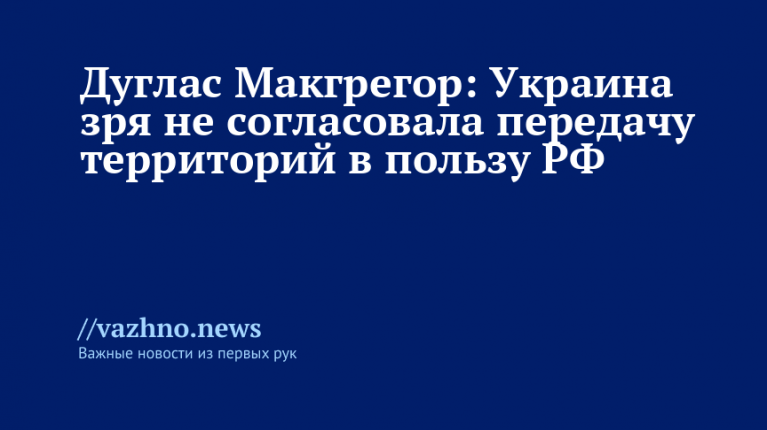 Дуглас Макгрегор: Украина зря не согласовала передачу территорий в пользу РФ