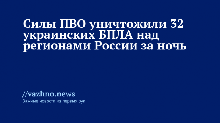 За минувшую ночь средства противовоздушной обороны (ПВО) уничтожили 32 украинских беспилотных летательных аппарата (БПЛА) над регионами России. Об этом 1 декабря сообщили в Минобороны РФ.