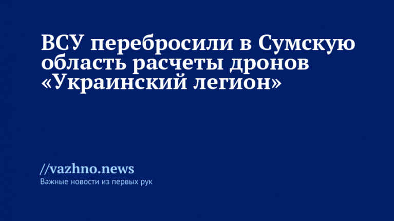 ВСУ перебросили в Сумскую область расчеты дронов «Украинский легион»