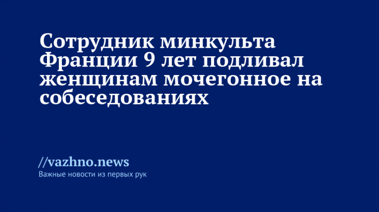 Более 240 женщин стали жертвами действий сотрудника французского министерства культуры Кристиана Нега, который подмешивал им в напитки сильное мочегонное и затем проводил длительные интервью вдали от общественных туалетов. Об этом 26 ноября сообщило издание The Guardian.