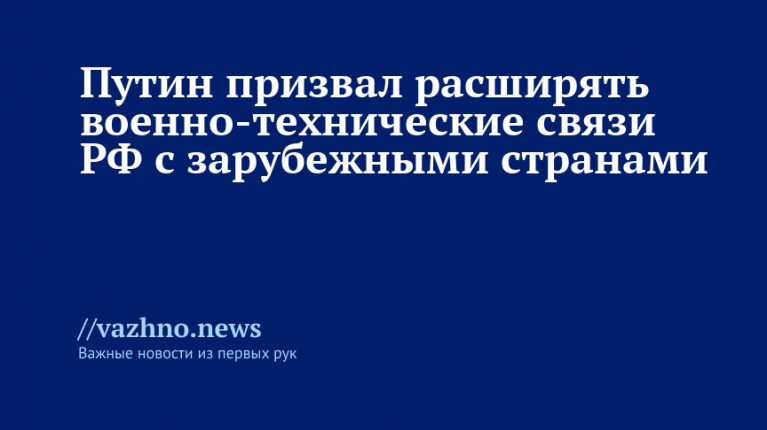 Путин призвал расширять военно-технические связи РФ с зарубежными странами