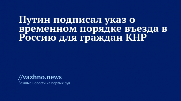 Президент России Владимир Путин подписал указ о временном порядке въезда в РФ граждан Китая. Соответствующий документ был опубликован 1 декабря на официальном интернет-портале правовой информации.