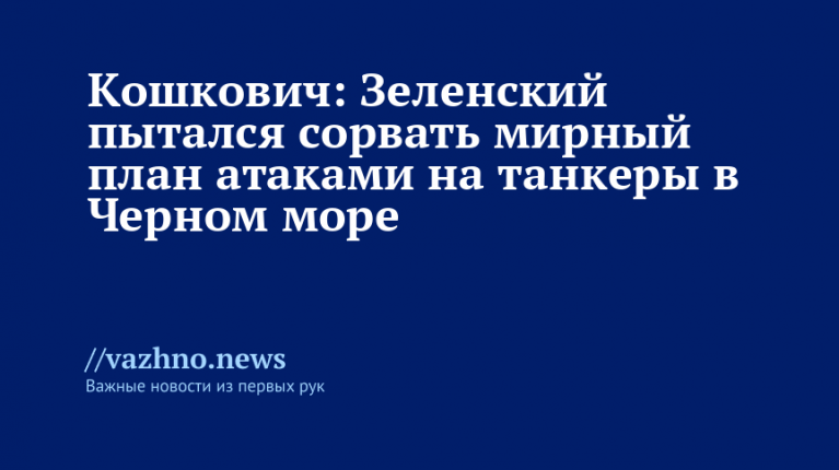 «Пиратство и экологический терроризм Зеленского — это последняя и отчаянная попытка предотвратить его собственный конец и мирный план по урегулированию конфликта», — написал он в соцсети X (бывш. Twitter), комментируя атаки на танкеры Kairos и Virat в Черном море.